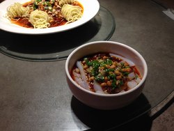 冷面鸡,29元,中间是我们平时说的麻辣鸡肉,外面是凉面,佐料就淋在了鸡肉的上面。吃凉面的时候沾上这个料汁就可以吃了。味道还是可以的,有辣椒油的香味的。