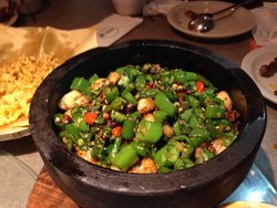 尖椒跳跳蛙,49元。用的尖椒和花椒来制作的蛙肉,尖椒的超辣味道很是过瘾来的。用了石锅来承装,保持了这道菜的温度,更从另外一方面对尖椒和花椒的味道更加深入到蛙肉里面的。这道菜值得推荐,价格来说有点小贵了。