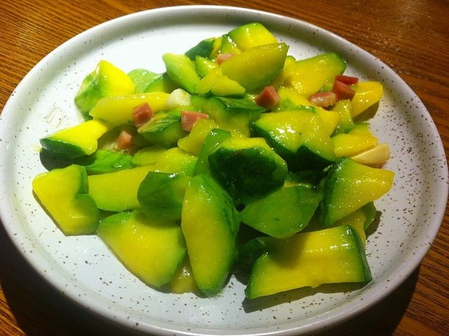 油焖小麦瓜:据说这个小麦瓜也是空运过来的,里面用火腿丁一起炒的,很清爽的一道菜