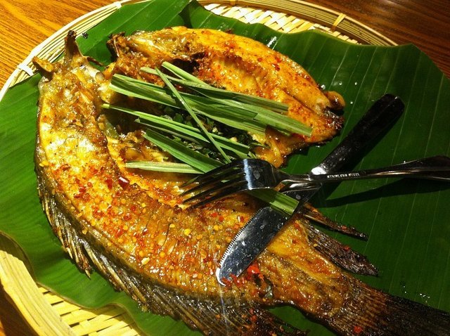 香茅草烤罗非鱼:罗非鱼上桌卖相就很好看,外脆里内,鱼肉特别的鲜嫩多汁,很好吃啊