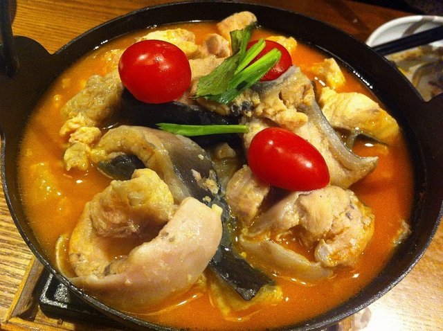 野果酸汤鱼:这个鱼肉好肥美啊,乍一看还以为是大块大块的肉呢,慢火烧一会,鱼肉吸收了汤汁吃起来更好吃了,喝了一口汤,酸劲十足很特别的味道啊,果然是热带版纳风味