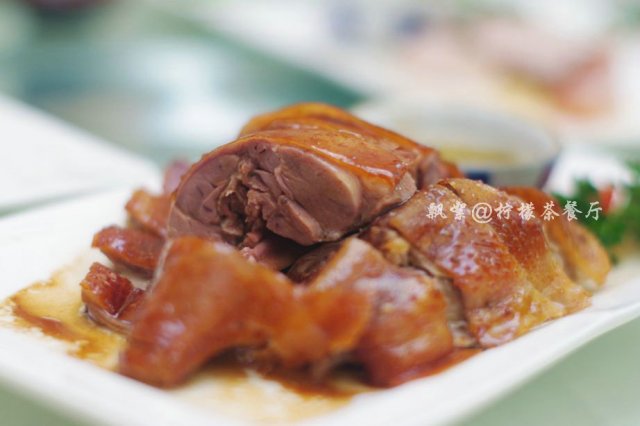 冷菜点了生炸软骨奶龄鸽、自制黑糯米椰香糖藕、一品黄金酥、秘制柠檬猪颈肉、明炉脆皮烧鹅,其中生炸软骨奶龄鸽,据说此道菜为它家的招牌菜之一,不仅色面佳,而且POSE也拗得好。夹起一块香喷喷的鸽肉尝之,感觉牙齿在与其触碰的瞬间,脆皮弹牙,肉嫩细腻滑口,带股诱人的焦香味;自制黑糯米椰香糖藕,造型精致酥爽的莲藕中夹杂着黏滑香软的血糯米,桂花幽幽的芬香在口中四散开来,甜蜜地直沁人心脾。