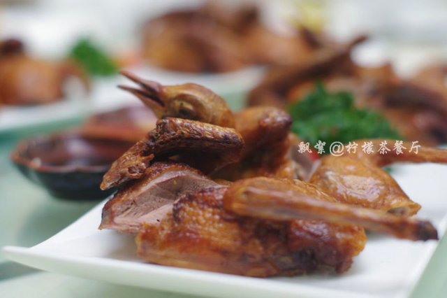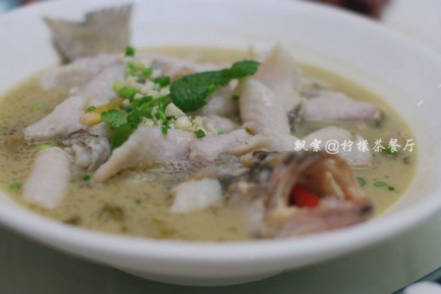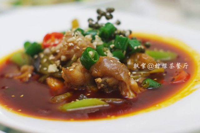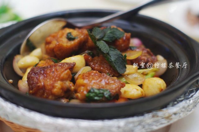 热菜点了澳门葡汁焗西兰花、广东芥兰炒腊味、招牌咖喱牛筋腩、柠檬家秘制三杯鸡、招牌馋嘴牛蛙、牛柳虾仁灼蛋白、鱼面筋、鲜杂果焗猪扒饭、惹味酸菜鲈鱼、虾仁西兰花,其中柠檬家秘制三杯鸡,将鸡切块,置于砂钵内,配以一杯甜米酒、一杯香油、一杯酱油煨制而成,故名“三杯鸡”,当然还得加入些许罗勒叶,才算得上正宗。鸡肉口感香酥嫩滑,透着一股鲜甜的酱香味,如同烤过了蜜汁鸡,好生诱人;招牌馋嘴牛蛙,蛙肉又肥又厚,食之大呼过瘾,丝丝入味,鲜辣香浓,肉质鲜嫩而富弹性,嚼在嘴里,满口生香;惹味酸菜鲈鱼,保留了鱼头与鱼尾。鱼身部分被切成薄薄的鱼片,细腻白嫩,浸入在黄黄的酸菜汤肉。鱼片入口嫩滑鲜美,有些酸溜溜的,当下吃很是开胃。才吃完一片,又忍不住夹了第二片;手打墨鱼饺酿油条,这油条的来头可大有讲究,据说是它家大厨的独门密笺,咬一口,外层的油条香脆却不油腻,内里的虾胶则QQ有弹性,果然名不虚传呀!