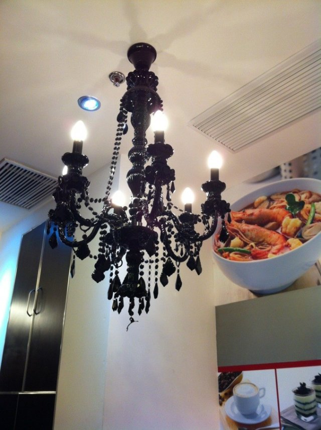 这家店铺采用全开放式的用餐环境,内部的装饰以红黑色为主,非常的优雅,环境很干净整洁,给人很舒适宽阔地方,欧式的吊灯,彩色壁纸,美轮美奂!