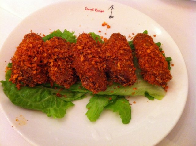 【新加坡烤鸡翅】:上面一层红红的脆脆的东西是新加坡的某种香料,口感太酥脆的了,包裹着鸡翅,口感非常的满足,味道很香,鸡翅烤的非常的嫩多汁,而且腌制的很够味道,二者搭配,取长补短,结合成一个完美的食物,展现给我们!赞!