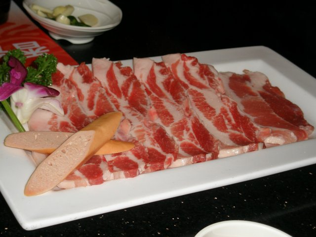 精品五花肉,38元。大概有五片吧!量不大,味道一般,谈不上精品。而且上烤肉都不上生菜的,要了蛮久才拿来的,哎,不过酱料的味道不好,影响口感。边上的酱汁味道倒还不错!