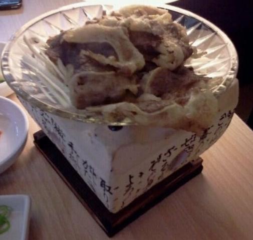 人家说烤肉不如说煎肉,最早的时候这家的盘子不是这样放纸的,而是正常的一个铁盘,后来估计这样清铁盘比较麻烦,就换成用纸了。用纸的缺点是,不容易把肉烤成焦黄,不过味道也差不了多少。而且用纸不容易焦。