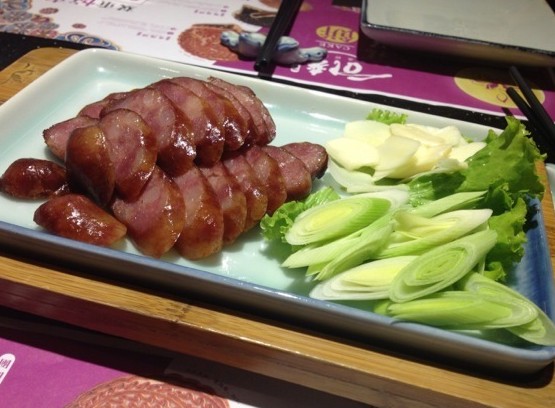 1、台湾香肠:52元1例,份量可以,切的片也挺厚实的,台湾自制的香肠,肉中带筋,吃着蛮香的,有搭配小菜,微微回甜的口味,吃着外皮还有点脆,口感不错。