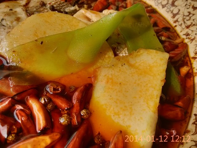 端上桌的时候,盆中的油还在微微翻腾,一股浓烈的海椒香气升腾了起来。