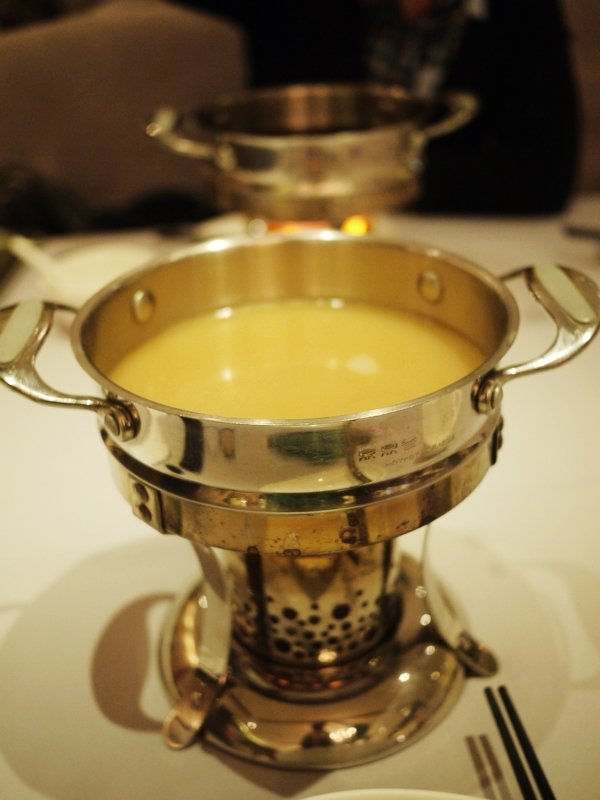 三个锅底分别是【鲜人参乌鸡汤锅底】55RMB。锅底里是什么都没有的,单独有一小碟乌鸡人参片,需要自己加上去。由于那一碟东西离我比较远,我还没来得及拍照就已经入锅了。。。