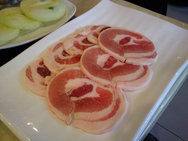 烤猪五花(约250克,价值35元),含配酱和生菜,肉片也是切的很厚实,肥肥的,烤的时候那个油流的啊,多烤一会味道还是不错的~~~