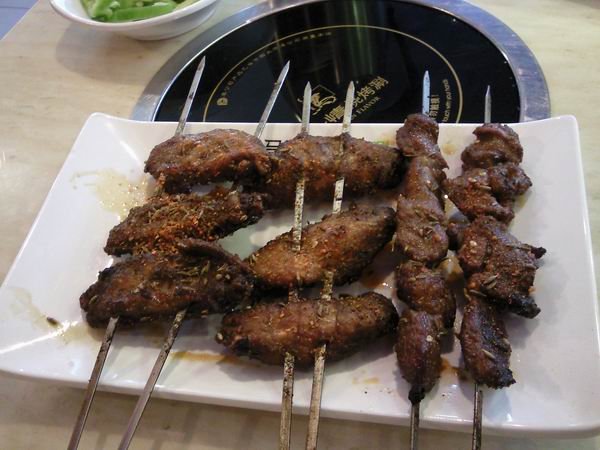 烤羊肉串(2大串,价值10元),好久没吃羊肉串了,挺香的~~~
