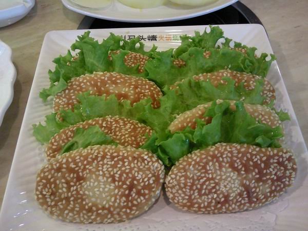 可汗烤肉饼(8个,价值14元),说是肉饼,明明就是空心饼嘛,里面可以夹着烤肉一起吃,尤其是夹着牛肉,真的很好吃~~~