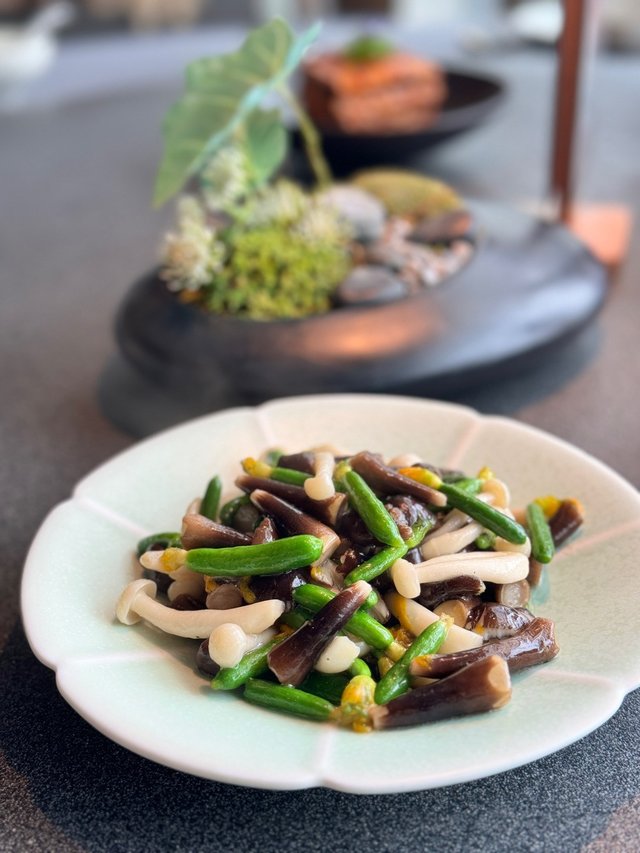 套餐還有一道特色的小蘑菇炒幼瓜🥒炒細小的果實十分可愛,解膩的效果很好。
