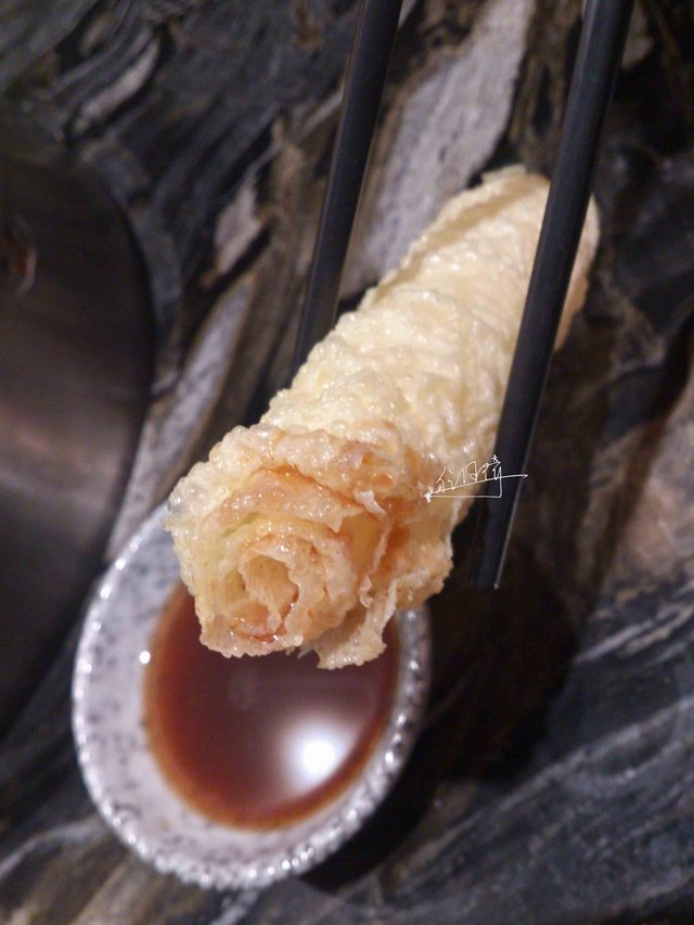 酱是酸甜味的 但是豆皮一点味道都木有 还是泡软了蘸调料更有味道呢~