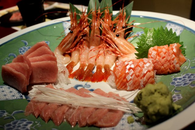 贪心的想要更多肿么办 有刺身大拼盘O(∩_∩)O 580的有大toro 牡丹虾 中脂 厚切三文鱼腩各5片,还有一大份海胆