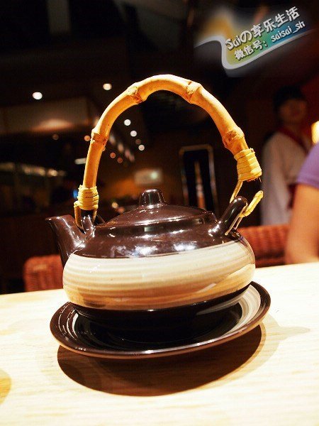 茶包饭是现场做的,壶里的汤汁用了上等的昆布熬制,鲜美清淡,上面还盖了一只厚实的天妇罗,吃出了扇贝的味儿,米粒混合茶香和柚香,竟然又全部下肚了,还有一款鲷鱼芝麻可选。红色漆碗很搭,还有更可爱的仙鹤状小碗,里边是酸甜可口的萝卜片,相得益彰之美;