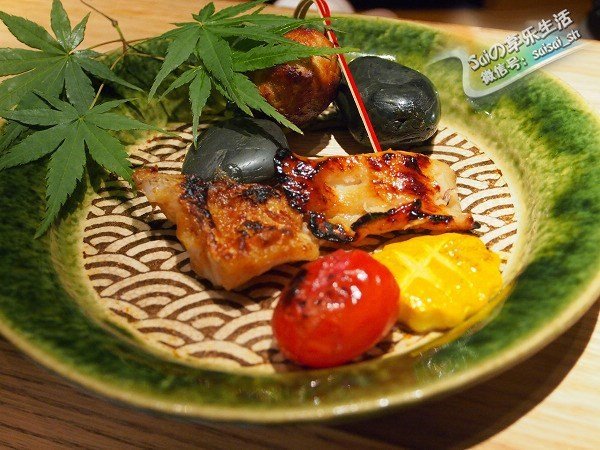 烤物就出自中间的厨房,从远处可以看到。一共三款,荤素搭配,有带有柚香的马鲛鱼,肉质没有鳕鱼那么肥润,较为清淡;干鲷加了辣miso更带感,还有合鸭肉饼和烤过的节瓜,小小的一块也符合怀石料理小小一口吃个78分饱的原则;