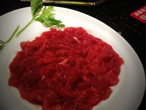 4、嫩牛肉:份量有些缩水,不过味道与新鲜度不改,事先进行了腌制,加了蛋,所以更加嫩滑,入锅后很快就熟了,吃着有肉道的口感,真不错。