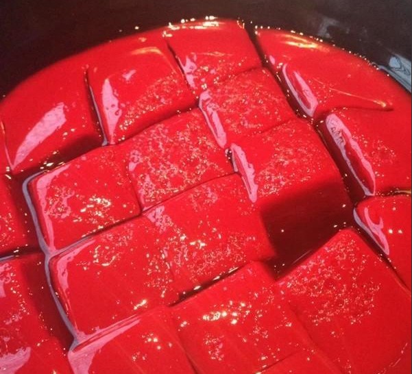 3、新鲜的鸭血:看颜色真的非常新鲜,红亮透着光,是切割分好的,下锅后怎么煮都是入口即化的口感,相当爽滑。量也蛮大的。