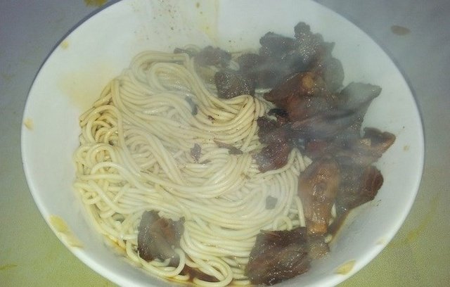 跟其他面馆一样拌面是需要加钱的,红烧牛肉很入味,而且有牛肉味,肉质比较有弹性,够酥嫩~拌面的酱汁不油,偏是酱油汤汁,咸淡适中,面条不是拉面,所以面条我更喜欢对面拉面馆的~但也不容易烂,吃口还行,再配个清汤,咸菜和辣酱随便加~