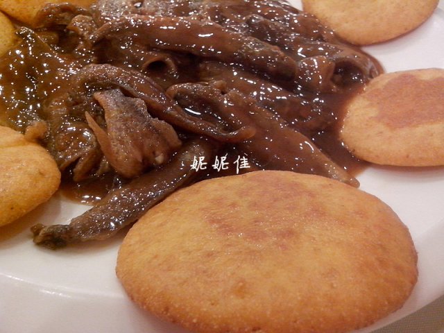 小黄鱼贴饼子30米:这菜很失败,饼子呢还是很香甜的,小黄鱼一指长的大小也有18条左右,不过烩的手艺太差,芡实在勾太多,除了咸,吃不出别的味儿来。