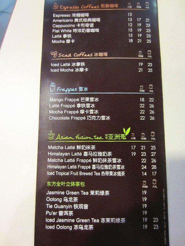 他家【鲜奶抹茶】S17,M21,L25。和星巴克的抹茶拿铁一样是不含咖啡的,属于抹茶奶茶。喜欢的是在抹茶上奶泡上的那个书法体”茶“字,有种古韵的感觉。抹茶味到也比较浓郁,不错,推荐一个!