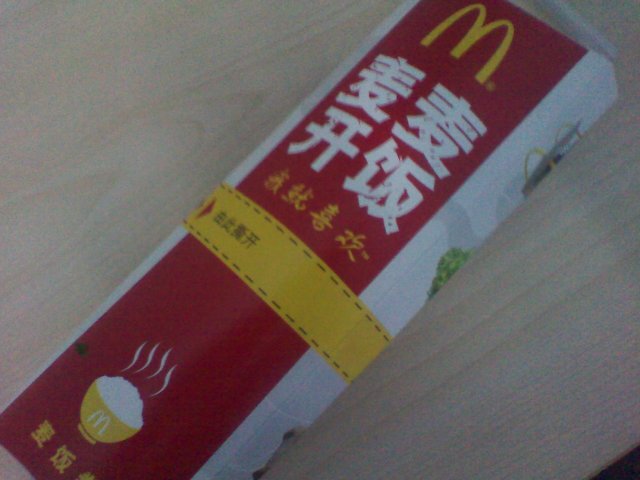 我想说其实现在工作了之后,像是快餐这种类型的吃得很少,总是赶脚不太健康。这次去麦当劳是因为他们家的活动,貌似是叫做夜亮了,下载软件之后可以玩游戏。送的是最新的麦饭卷,我的是牛肉味的,还有鸡肉味的。中午的时候去吃了,当做午饭,正好节约钱。看了下价格,好像要18元,真的是太贵了。。。验证了二维码,稍微等了一会,一个长长的盒子,从中间撕开来,外面的饼是绿色的,里面有糯米饭牛肉饼和蔬菜,牛肉有点硬,有点干,味道一般。糯米有点油腻,味道还行吧,免费的随便吃吃。