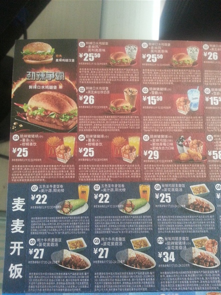 麦当劳 老同学等級32013-11-2619 瀏覽 關注 麦当劳 地址位于昌平区立汤路186号龙德广场1楼(近地铁5号线立水桥站)。 今天早晨的信报里面的麦当劳 优惠券呢,新的,有的很划算哦。 那个辣翅搭配中暑才14块钱,挺不错的,下班的时候,可以去尝试一下,我最喜欢的小个头的新低也很划算八块五两个哦,不过椰涨钱了。以上食評乃用戶個人意見 , 並不代表OpenRice之觀點。讚好分享麦当劳 麦当劳 https://s.openrice.com/KtbT1m0m9y400檢舉 張貼 評分4味道4環境4服務4衛生4抵食
