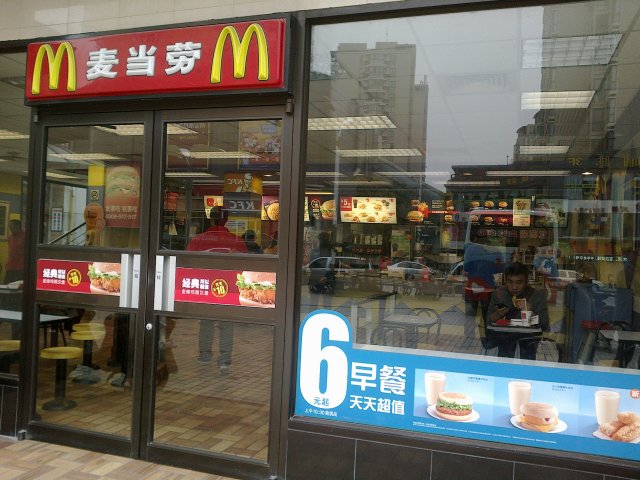 记得以前上高中时候,路过麦当劳,偶尔会买个汉堡外带,还记得门口有个麦当劳叔叔坐那,我和和他合过影的。这家餐厅有两层,地方大小感觉还行,生意也还可以,只是对面就是肯德基,所以相对肯德基可能逊色一点。我比较钟意他家的早餐组合,6元起,有汉堡、豆浆、油条等搭配,还不错哦,油条很好吃,一看颜色就是好油弄出来的,豆浆味道也浓,不像是兑水冲的吧。麦当劳当然也有外卖点餐的,还是很方便的,官网也有优惠券可以下载,很合算。服务员也很礼貌,一般看到哪边吃完就会去及时收拾了,收拾的也挺干净。