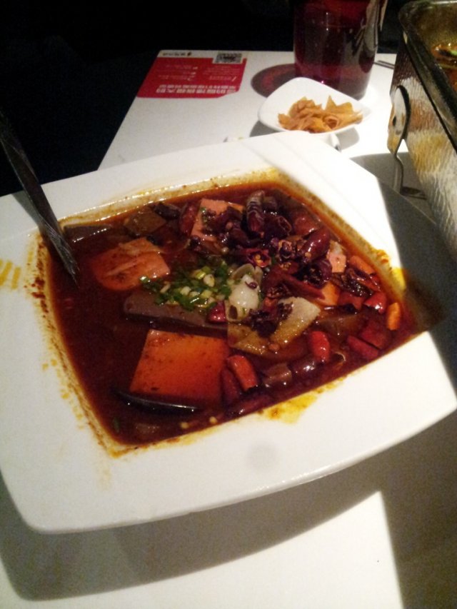 小份的毛血旺:一个字,好辣啊。。。里面很多血,方肉。
