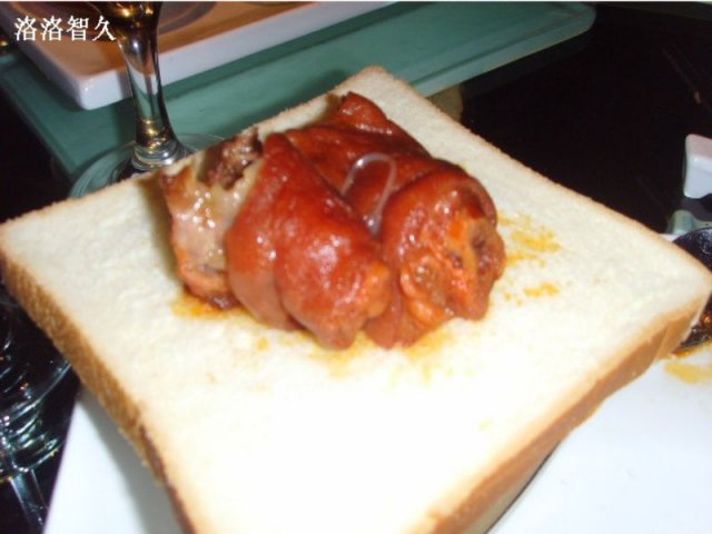 这边的店家还是很贴心哒,附上面包片让食客们吸油~