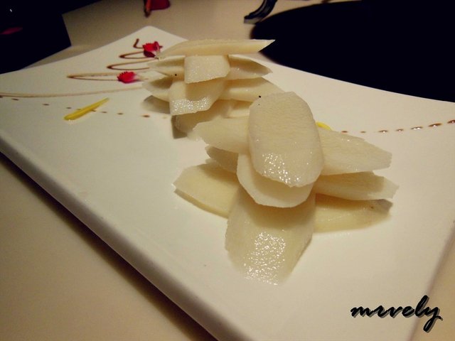 糖水山药,只是简单的糖水山药,山药的质感很棉柔,稍稍带着一点点脆脆的口感,不过在麻辣诱惑家吃这道菜,自然是希望它能有一些解辣的口感了,但是这道山药出来的时候,竟然还有些微微的温度,加之糖水的甜度,所以吃起来会觉得有些甜腻。