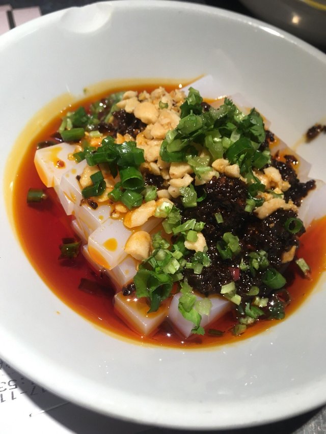 我们点了一道重庆豆花烤鱼,餐牌上面有三种鱼类供我们选择,我们点了凌波鱼,说到这个凌波鱼,我在网上搜索不到这种鱼的资料,众说纷云,比较靠谱的说法应该是又名巴沙鱼的龙利鱼,这个鱼没什么骨头,肉质白滑很是不错……不过鱼皮略苦,我们跟服务员小哥反映了一下,他说这可能是因为烤焦了,小哥很有礼貌,先给个赞。重庆豆腐很好吃,整个锅都蛮辣的,像我们这种不大吃得了辣的最好点其他。