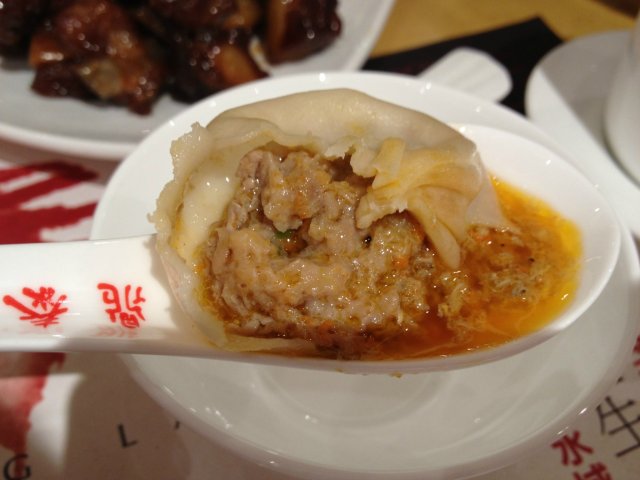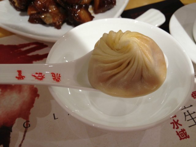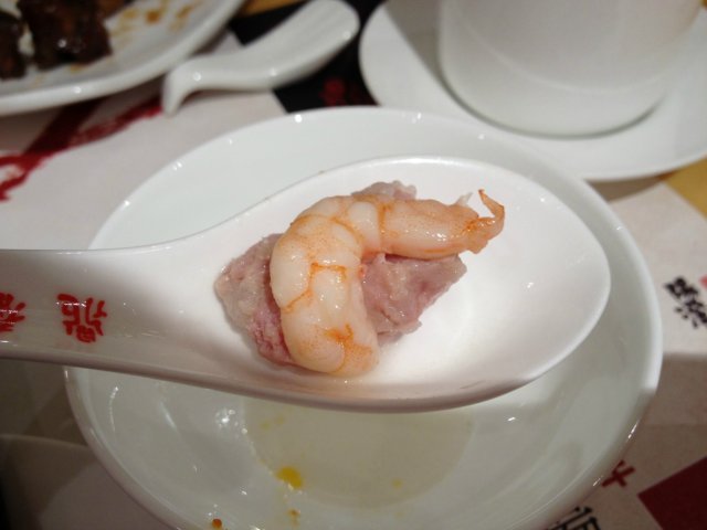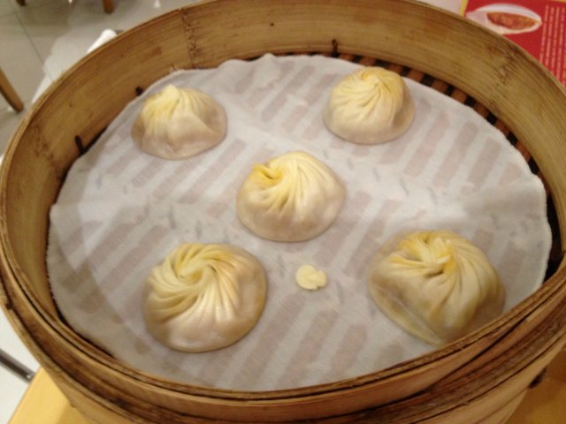 招牌蟹粉小笼是必点的,据说鼎泰丰的小笼包用的肉馅一律采用新鲜猪肉,选材严谨、一丝不苟,使用特制专用面粉,不用冷冻肉。虾饺、蟹黄小笼包等皆采用活虾活蟹,以保证肉质鲜嫩。我们要了半份,只有5个,价格好像是50左右,我只能说味道还不错,但真不值这个价钱。。汤汁很鲜,蟹黄有点少,味道不太浓,皮有点硬。