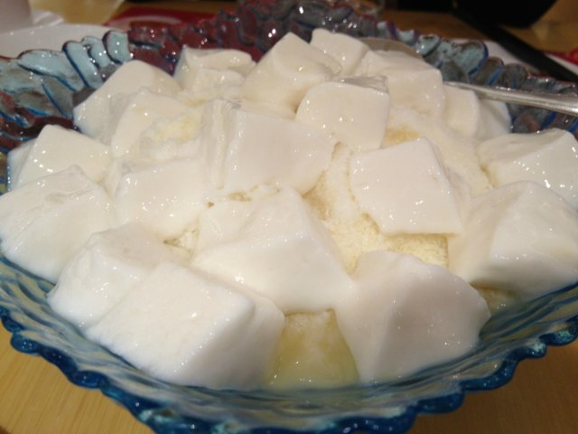 还有他家最有名的甜品玉脂冰清,就是在绵绵冰上面摆上杏仁豆腐,超大一份,确实很好吃,但50块钱还是太贵了啊。想起在南锣人家吃到的杏仁豆腐跟这里的做法是一样的,味道也不逊于这里。