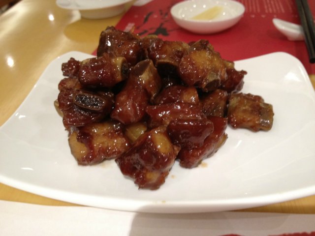 看点评的推荐点了一个糖醋小排,没想到是道凉菜。量超级小,45块钱。味道真心一般,炸的太焦,肉很硬,脆骨和肥肉偏多,个人感觉比南京大排档的差远了。