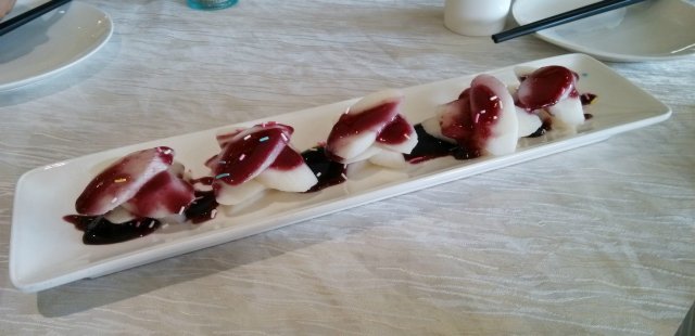 【蓝莓山药】跟通常的蓝莓山药不同,鼎盛的山药是整片的,并不是山药泥,不过味道不错,有种清脆的感觉,甜甜的、脆脆的。