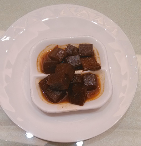 这道菜名字起得优雅,造型也不错,更关键的是味道上好。外面是一层焦皮,里面是夹心,说不出来是什么味道,反正很合我意,吃了两块,而且不会感觉腻。听人介绍才知道,这道菜用到了鸡肉、猪肉、虾肉、青菜、海苔、鸡蛋等多种食材,难怪这么美味了。