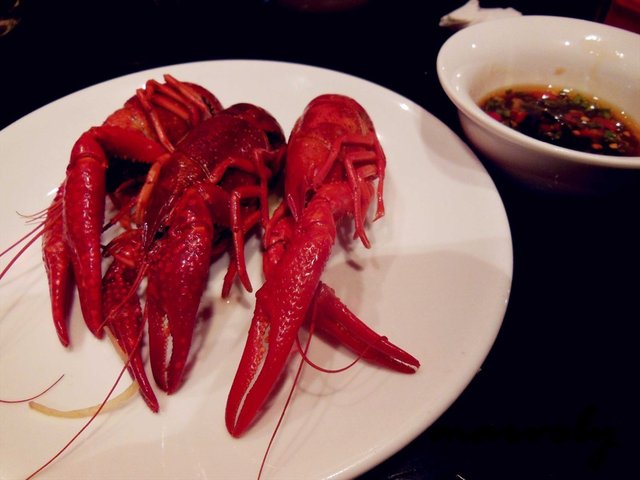 店家准备推出的新品清蒸小龙虾,需要蘸酱吃的,酱料只是加了料的酱油碟,有些普通,但足以烘托出小龙虾的鲜嫩,期待下次可以吃到整盆的清蒸小龙虾。