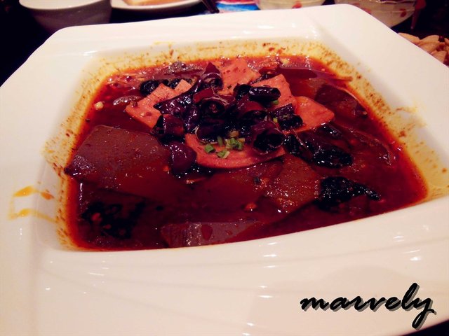 口味偏重,但是并不辣,而且里面几乎没有看到毛肚,只有猪血、木耳、午餐肉。