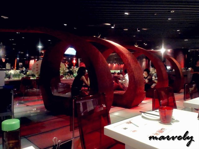 双休日中午到了长宁龙之梦5楼的麻辣诱惑,到的很早,不到十一点半,店里似乎是刚刚才开始营业,所以店里客人很少,门口的领位员把我们领到了餐厅右手靠近窗户的位置,这里的装修显得比较时尚,灯光的运用同样使得这片区域很梦幻。