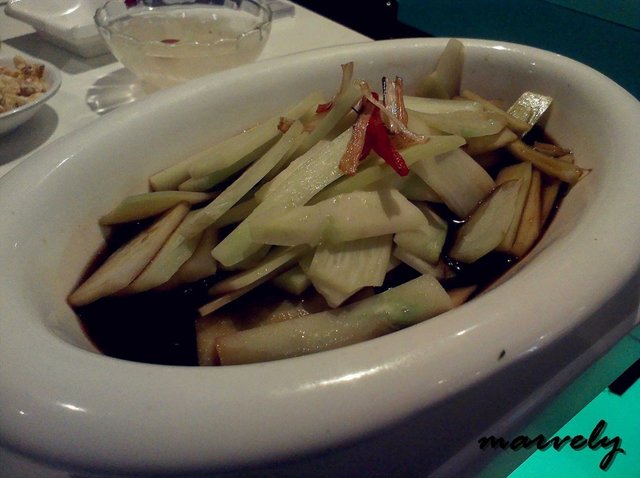他家的芥兰是切片的,个人觉得切片不如切条更能体现芥兰的脆,虽然吃起来会比较嫩,但同样会让焯过的芥兰变得老,于是这盘芥兰,有一半的吃起来有些老。