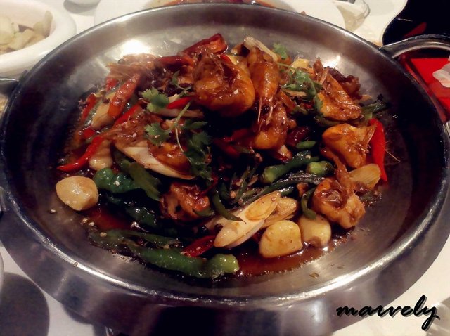 今天的鲜椒鱿鱼虾做的特别好,虾自是不必说了,很入味,鱿鱼则是包裹着酱料的,柔嫩。这道菜总体的辣度很高,虽然已经吃过很多次麻辣诱惑了,但是今天这道鲜椒鱿鱼虾的辣,可以算是这半年来,他家我吃过最辣的一道菜。而且锅底下一直在加热,使得这辣度在火候的支持下,可以丝毫不减。虽然辣,但是却辣的很有刺激感,让我吃了还想吃。
