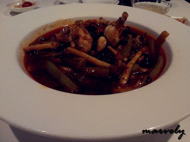 牛蛙是很嫩,只是看似浓郁的汤汁只是在牛蛙上微微的裹了一层,却根本无法入内,所以这牛蛙吃到里面,有些平淡无味。而且吃到后来,里面的各种食材都变得有些酸,估计是酸笋的威力太大了吧。