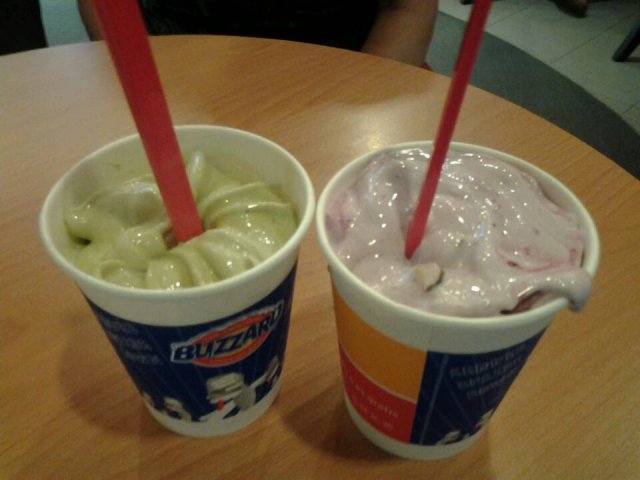 20元两杯 甘之如怡等級42013-06-0914 瀏覽 關注 今天虽然是周日,但是却是工作日,所以有二十元两小杯的优惠哦,平时是只能周一到周五才有,不过明后天(周一二)是调休休息的,所以也木有这个优惠。 两小杯,点了一个蓝莓巴旦木和一个抹茶巴旦木。我始终是抹茶的粉丝,虽然抹茶杏仁吃了好几回了,可还是选了它,我觉得量好像又少了,抹茶的味道还是蛮好的,不会太甜,杏仁粒夹着吃,好香耶!老妈吃的是蓝莓杏仁,蓝莓的就比抹茶的甜些,不过带点微酸,也蛮好吃的。以上食評乃用戶個人意見 , 並不代表OpenRice之觀點。讚好分享20元两杯 DQ冰雪皇后 https://s.openrice.com/KtbT100LEu500檢舉 張貼 評分4味道3環境3服務4衛生4抵食