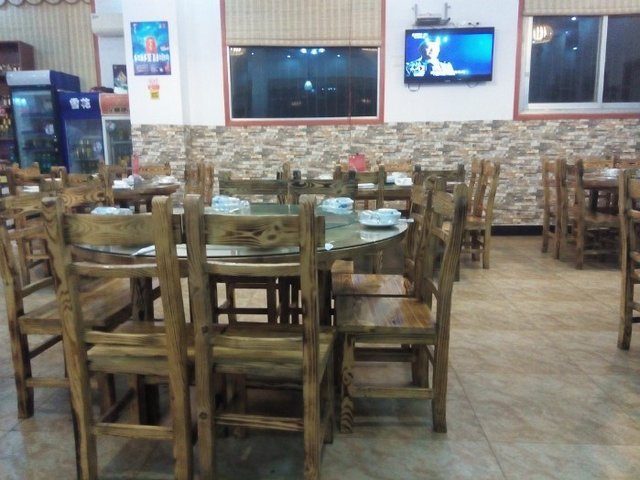 店里就我们一桌,可能三个服务员都太忙了吧。