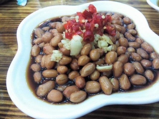 这个有点奇葩。油炸花生米,然后倒入醋,老胡表示。。。太黑暗,太重口味,我接受无能。。