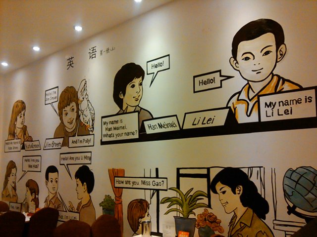 室内的墙壁是当年的英文课本