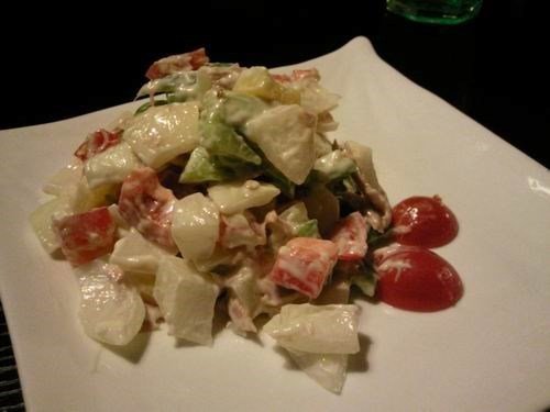 沙拉要了金枪鱼沙拉,这个简直就是惨剧啊!满怀希望的吃了一口,我靠,结果竟然是青椒、红椒、黄椒、洋葱!金枪鱼呢?你在哪?我和同事刨了半天,只有可怜了一点点金枪鱼而已,您少放金枪鱼没关系,但您能不能放点黄瓜生菜什么的啊,就没见过拿这么多彩椒和洋葱配金枪鱼的!我和同事都不爱吃,一盘子全浪费了~~~